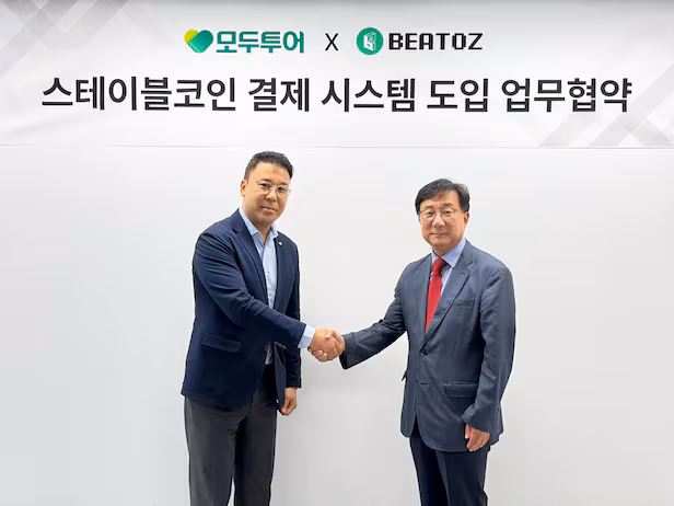 블록체인 기술 기업 비토즈(BEATOZ)가 국내 대표 여행사 모두투어네트워크(이하 모두투어)와 스테이블코인 결제와 관련해 손을 맺었다.