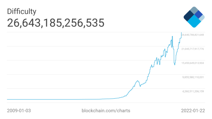 그 결과, 1월 22일(현지시간), BTC 네트워크는 약 26조 6,430회 난이도의 ATH를 기록했다.