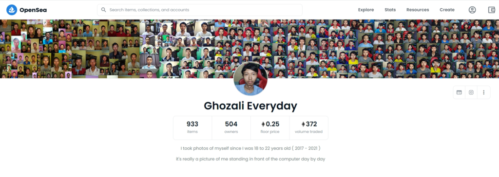 17일(현지시간) 외신에 따르면, 인도네시아의 대학생 술탄 구스타프 알 고잘리(22)가 5년 동안 거의 매일 찍은 셀카 1,000장을 NFT 거래 플랫폼 오픈씨에 올렸고 투자자들 사이에서 뜨거운 반응을 얻으며 팔린 결과 118만 달러(약 14억 500만원 상당) 이상의 수익을 올렸다.
